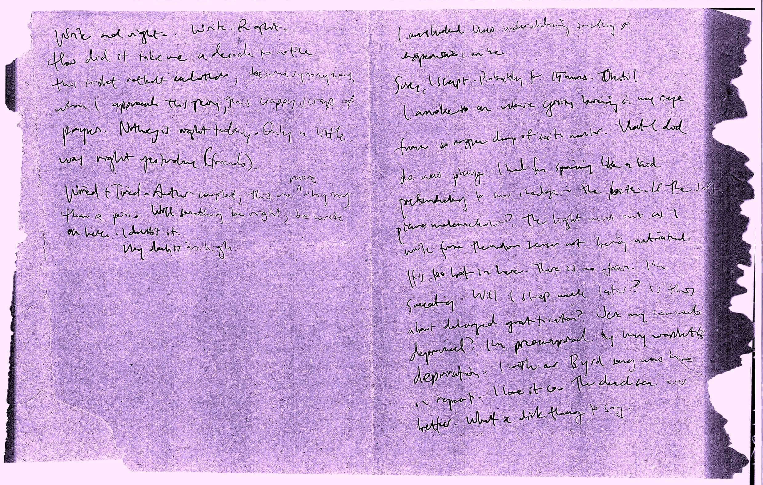 In Julia Cameron’s infamous The Artist’s Way (1992) the foundational practice that is to be exercised every day throughout the prescribed syllabus Cameron offers to those keen to ‘recover their artistic selves,’ is the morning pages. With the morning pages, one sits down first thing in the morning (every morning) and writes three pages, non-stop, of whatever comes to mind. This is intended to be a kind of ‘mental dump’ where the content doesn’t matter and they need never to be read again. When I write morning pages they reliably become sheets of scrawl, partially due to speed since I want to get them over and done with, or sometimes there is so much to get out the writing becomes frantic, and partially because my handwriting is naturally quite doctor-esque. The physical action of doing such writing feels liberating, as does the knowledge that these words and their content never need to be read again. It is fun and therapeutic to write writing that has no need to be read.