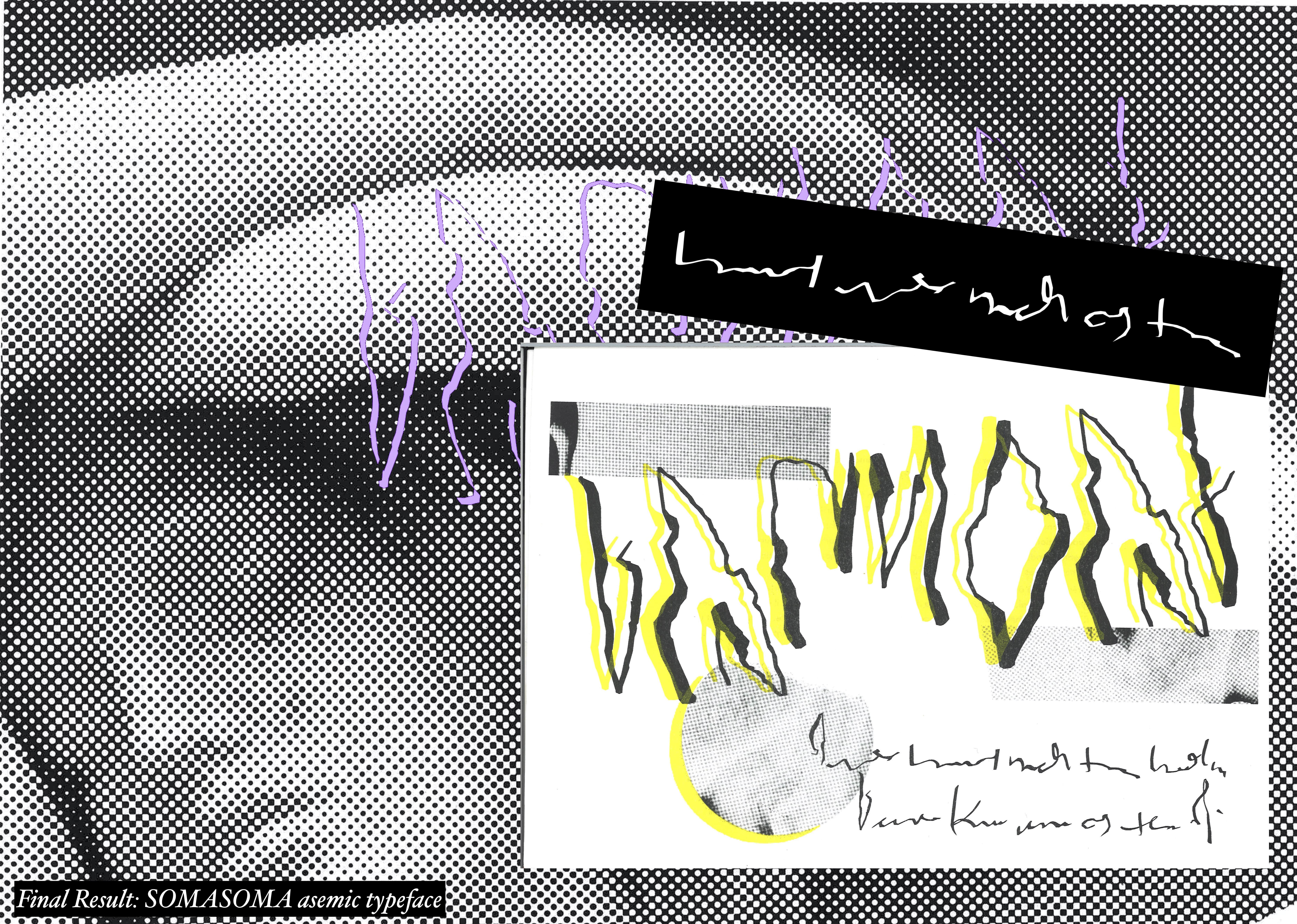 SOMASOMA is an asemic typeface – meaning that is has no specific semantic content. Rather, the font proposes what happens when the body speaks and words escape it, try as one might to scrawl out the experiences of pain, suffering, or even euphoria.