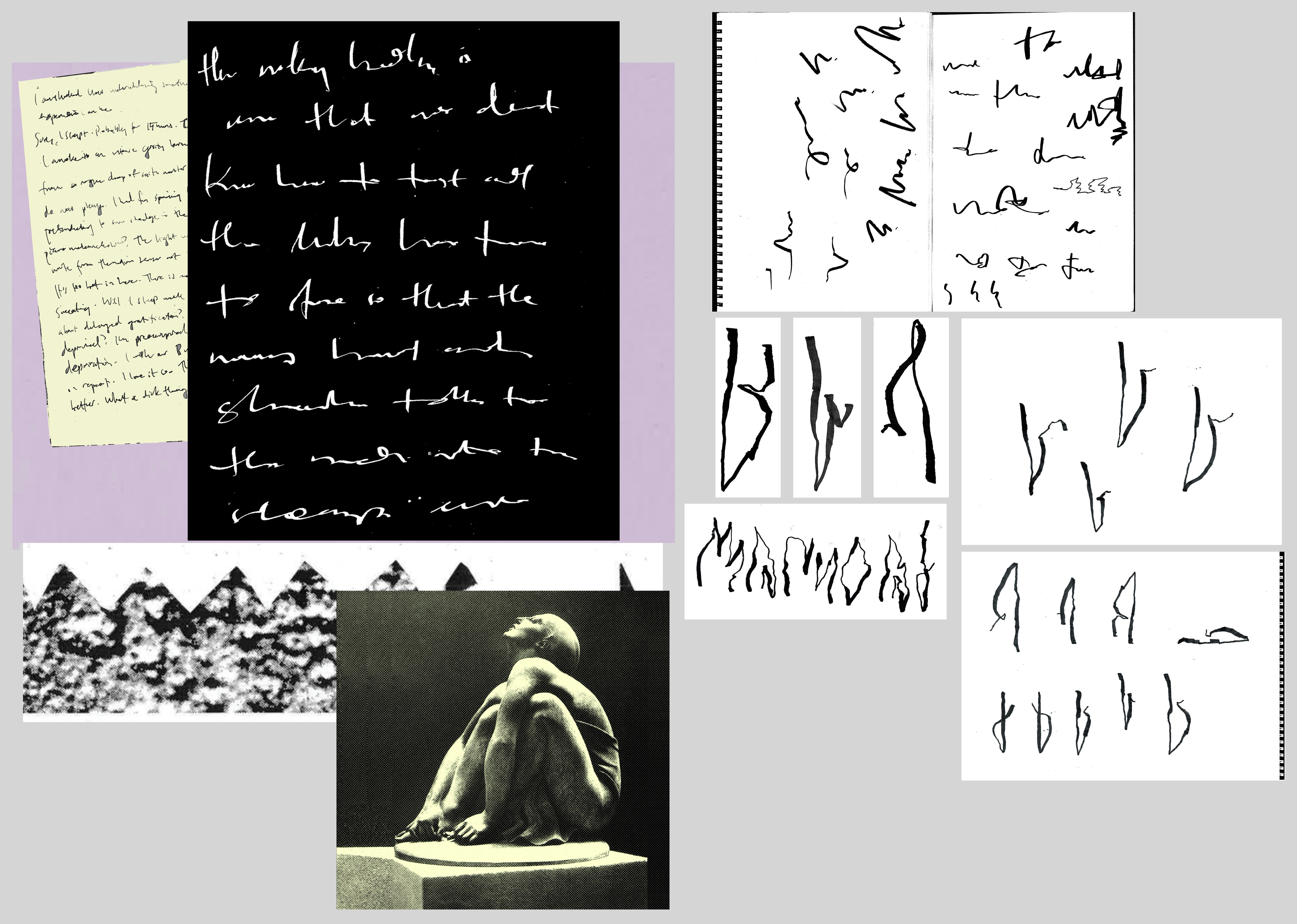 In my application I explained my desire to create a digital typeface that was asemic, one that took inspiration from the non-verbal language of the body—the ‘language’ that doesn’t seem to compute with one’s usual words, can be international and universal (we may not speak the same verbal language, but it is possible you can relate to how my body feels after exertion, how my period pains effect my digestion, what it is like when a headache is reverberating from between the eyebrows)—and simultaneously could create a vacuum of meaning that lies open for the reader to fill in and interpret.