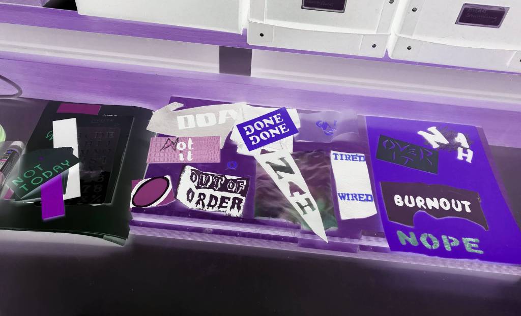 This piece is continued in a part II on how this residency led to the work MENTAL HELLTH DUMPSTER FIRE, a multimedia piece including textile works, zines, and texts, as a cultural commentary on how burnout may have become more than an individual condition, but a social mood. Part II will be online next week. Stay tuned.