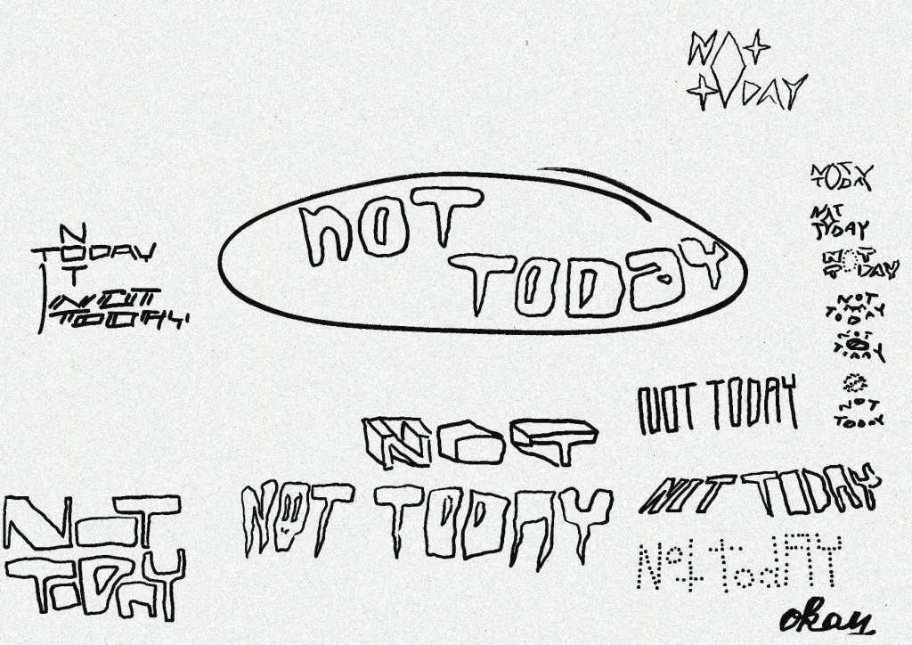 The project I worked on whilst at the Living Museum began with the theme of boundaries. Boundaries is a key word that came up again and again in my conversations and discussions with people on the topic of burnout throughout the successive years of research. Essentially, one learns that the setting of boundaries (in all aspects of life) and learning how to assert and protect them becomes uncompromisable, reaching non-negotiable. Taking this to Wil as my starting point, I had also been thinking about the voicing of boundaries. How hard it can be to do so, how great it would be to communicate them without needing to do that verbally, thus avoiding the inherent labour that comes drawing these lines, making that heard, upholding or defending them. Sharing these thoughts with Dr. Ottiger, I told her how some days I wish I had the words ‘NOT TODAY’ emblazoned across my front (not literally like a slogan t-shirt, just a disclaimer, a permiation whether visible or sensed otherwise.) We discussed the embodiment of these feelings, and the way that clothes are a sort of boundary upon the body. A barrier between ourselves and the world. A simultaneous means of expression.